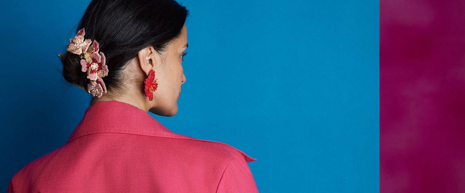 Deepa Gurnani epitomises luxury in handcrafted jewellery, renowned for its exquisite, hand-embroidered designs by skilled artisans. Each statement piece, crafted with the finest materials, showcases intricate detailing and opulent aesthetics.