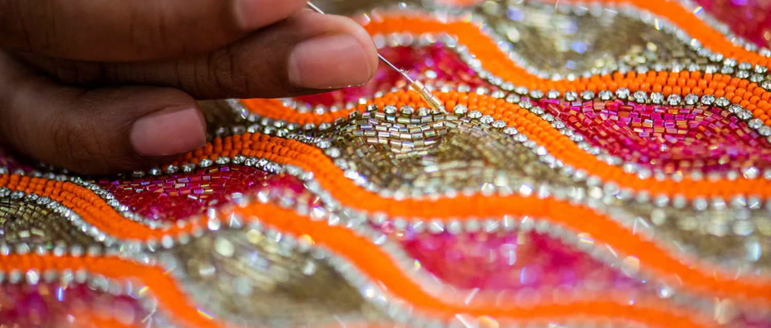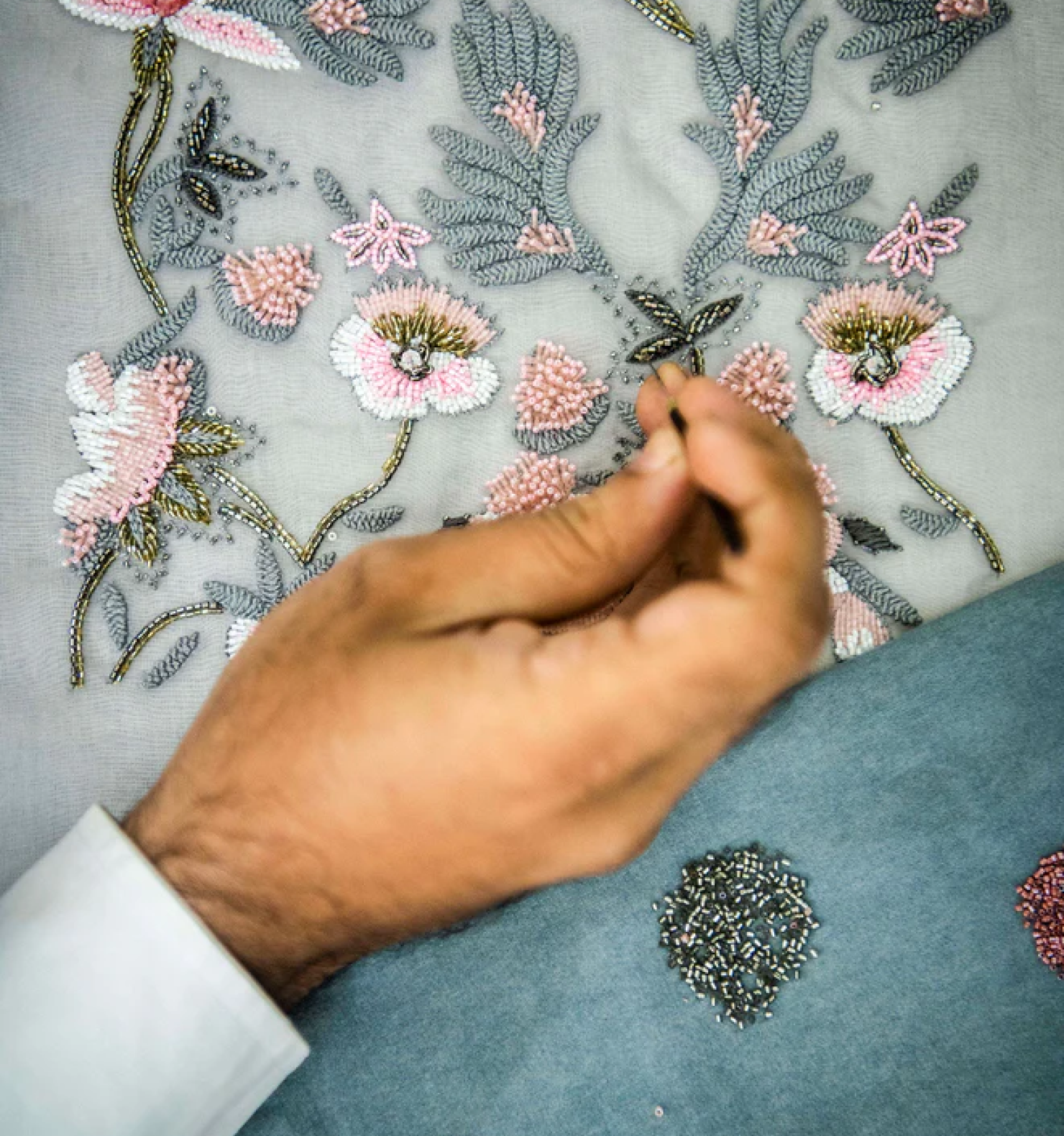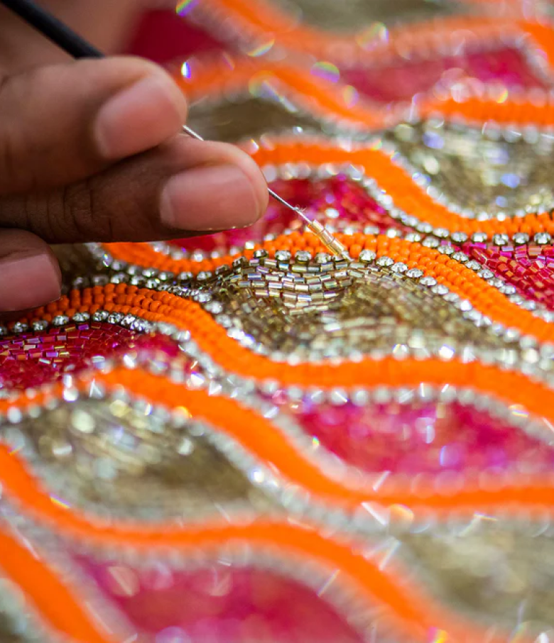 Our designs incorporate intricate embroidery techniques such as zardozi, mirror work, and aari. These techniques, requiring years of mastery, are passed down like heirlooms among skilled Karigars (Artisan). We recognize and collaborate with these Artisans to preserve and highlight the unique crafts of different regions in India.The pieces are adorned with an abundance of semi-precious stones, showcasing our commitment to meticulous craftsmanship. The headpieces, in particular, exude opulence, reflecting the grandeur of historical royal adornments. Inspired by the regality of royal lifestyles, the newest collection pays homage to this opulent legacy, encapsulating the essence of the Royal Family's admiration for ornate jewelry and accessories.Our inventive spirit and dedication to our cultural roots consistently inspire the incorporation of these exquisite embroidery styles into creations, making each piece a personal link to our heritage.