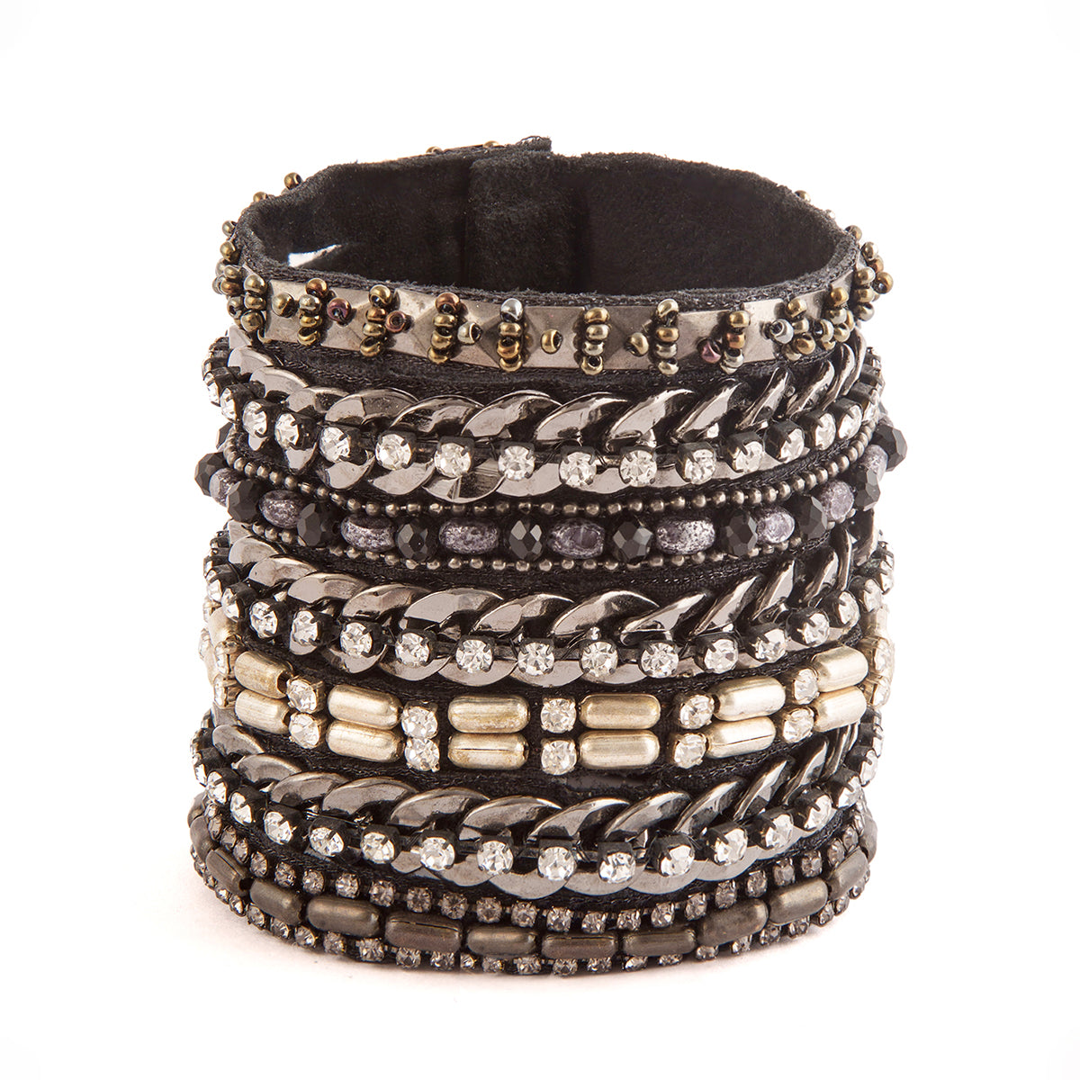 Add a touch of elegance to any outfit with our hand embellished Nerisa cuff. Made with high-quality glass stones and beads, this statement bracelet is the perfect accessory for any occasion. Elevate your style with the Nerisa cuff today.